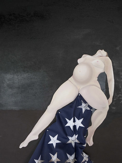 The breeder is a martyr piece presenting the current fight for Women's right to their own body. A dystopian future where we have no choice in our body autonomy which is already a reality in alot of states. This is a topic close to my heart as I have experienced having to choose and even though it was the hardest choice I had to make, it was only mine to make. I do that by writing a snippet of my own story on the flag placing myself in this vulnerable polarizing position. I also do this to create a connection to the viewer looking to show there are two sides to every story and I wanted to place myself at the center of the fight for all women.